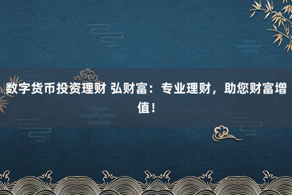 弘财富,您的专业理财伙伴数字货币投资理财,助您财富增值,成就梦想!